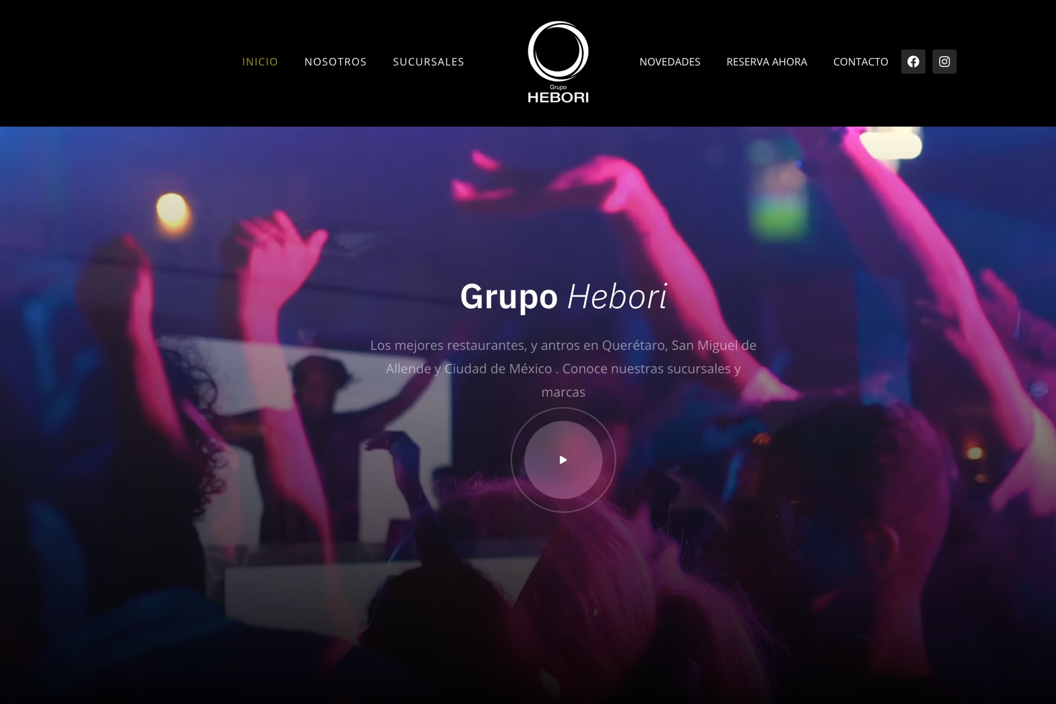 Grupo Hebori buscaba centralizar la difusión de todas sus sedes en un solo sitio web, mostrando de forma clara cada ubicación y los detalles de sus diferentes antros en Querétaro. Además, necesitaban integrar un sistema de reservas ágil mediante un formulario que les permitiera gestionar y organizar mejor la atención a sus clientes.
