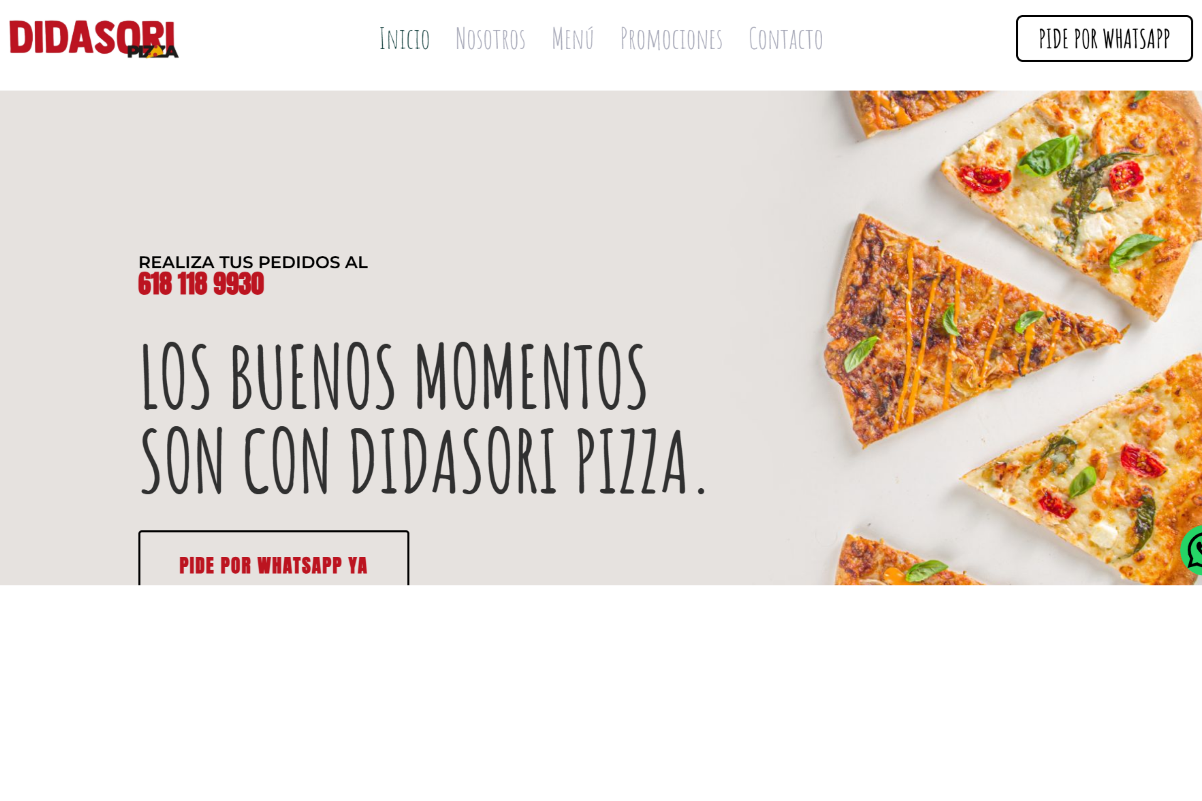 Didasori necesitaba una página informativa que mostrara claramente su menú de pizzas, tamaños y variedad de ingredientes. Sin una plataforma digital, sus clientes no tenían un lugar confiable donde consultar la oferta antes de ordenar. Por ello acudieron a nuestra agencia para desarrollar una web práctica, atractiva y fácil de navegar.