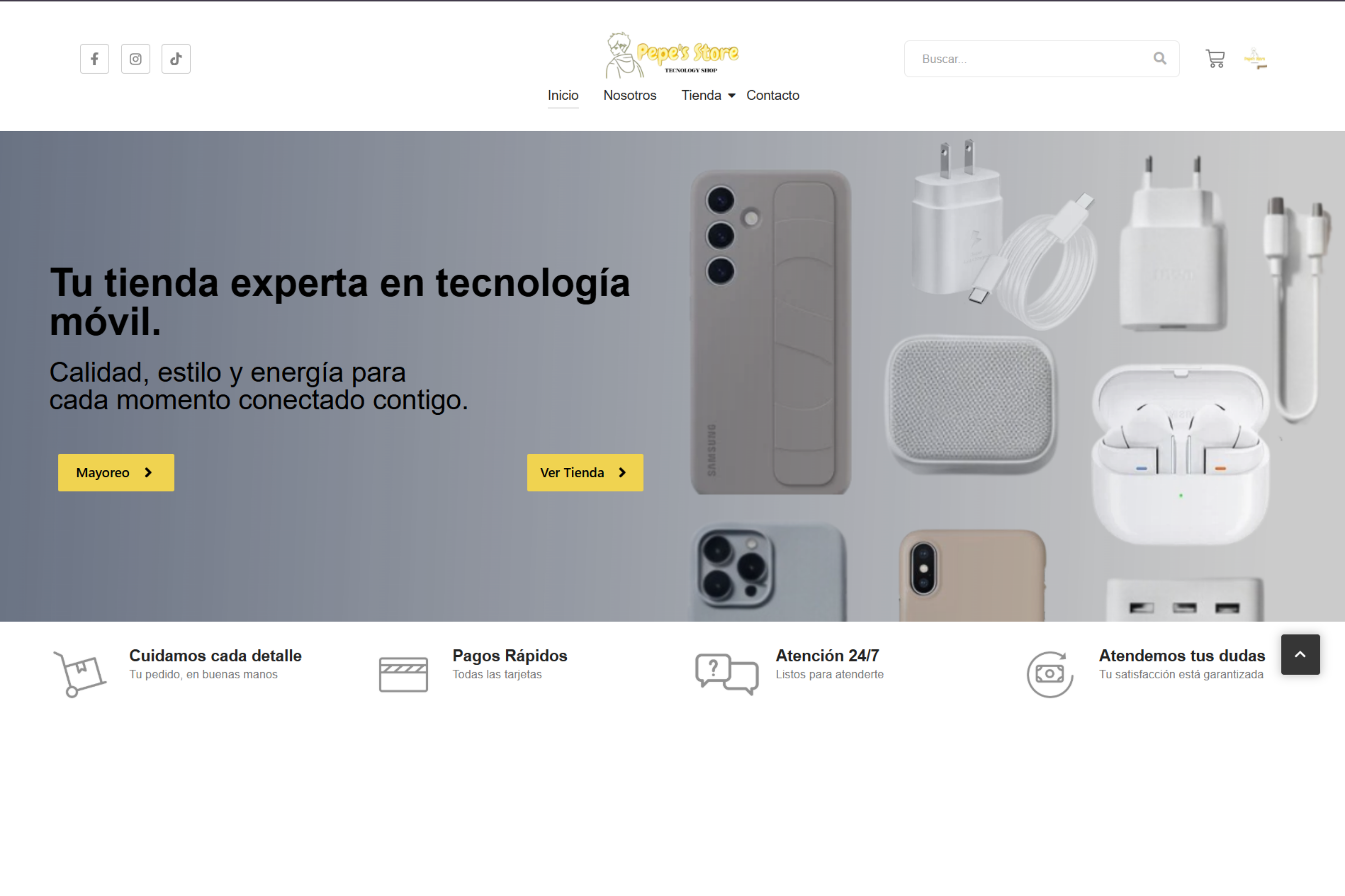 Pepe Store necesitaba ampliar su alcance más allá de su tienda física. Aunque ofrecen productos tecnológicos como pilas, cables y accesorios, carecían de un espacio digital para llegar a más clientes. Por ello, se acercaron a nuestra agencia para crear un e-commerce que potenciara sus ventas en línea.