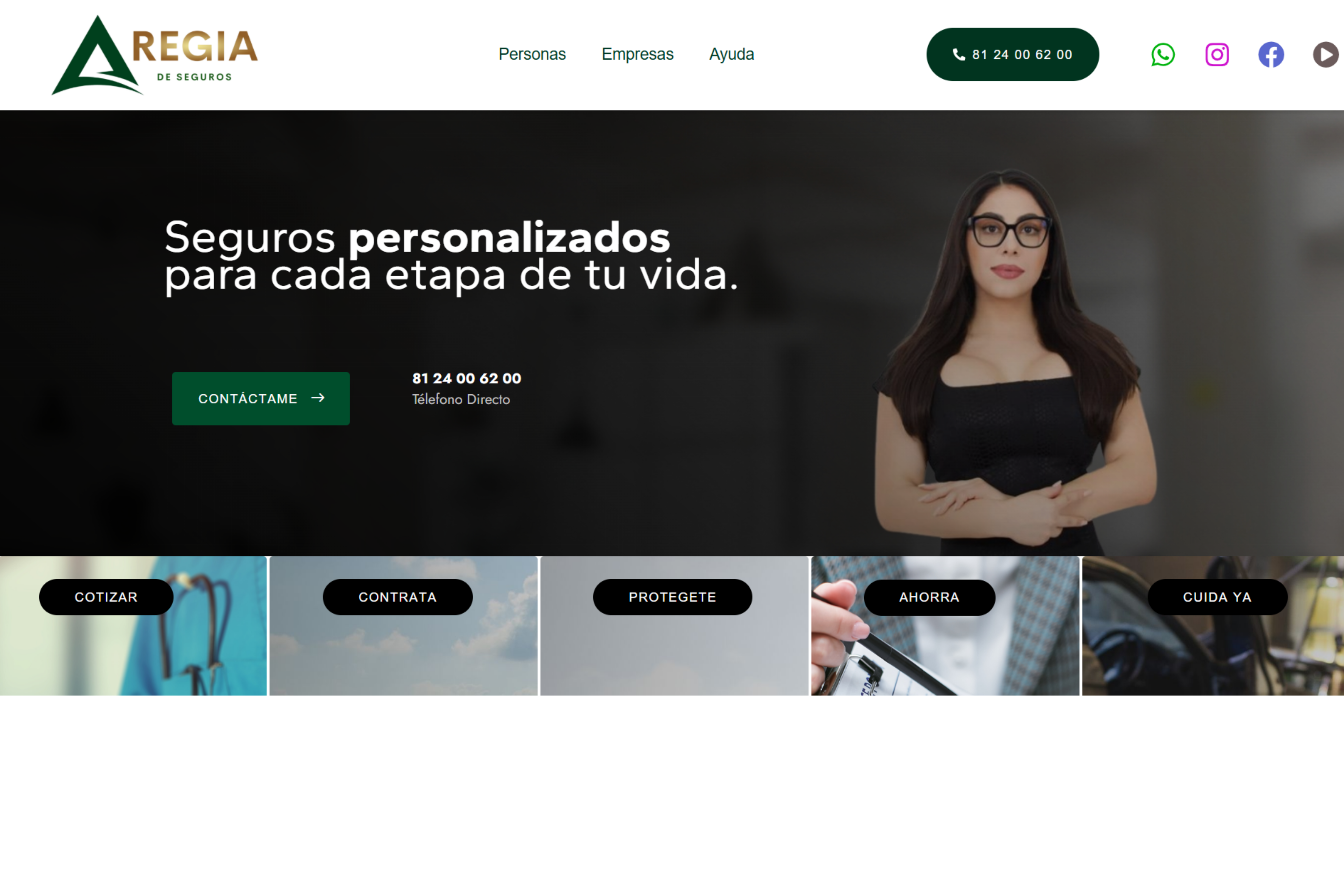 Regia de Seguros enfrentaba el reto de comunicar claramente sus servicios y llegar a más clientes potenciales. Aunque ofrecen seguros de auto, vida y hogar, no contaban con una página web que transmitiera confianza ni facilitara el contacto. Por eso acudieron a nuestra agencia para desarrollar una plataforma profesional y efectiva.