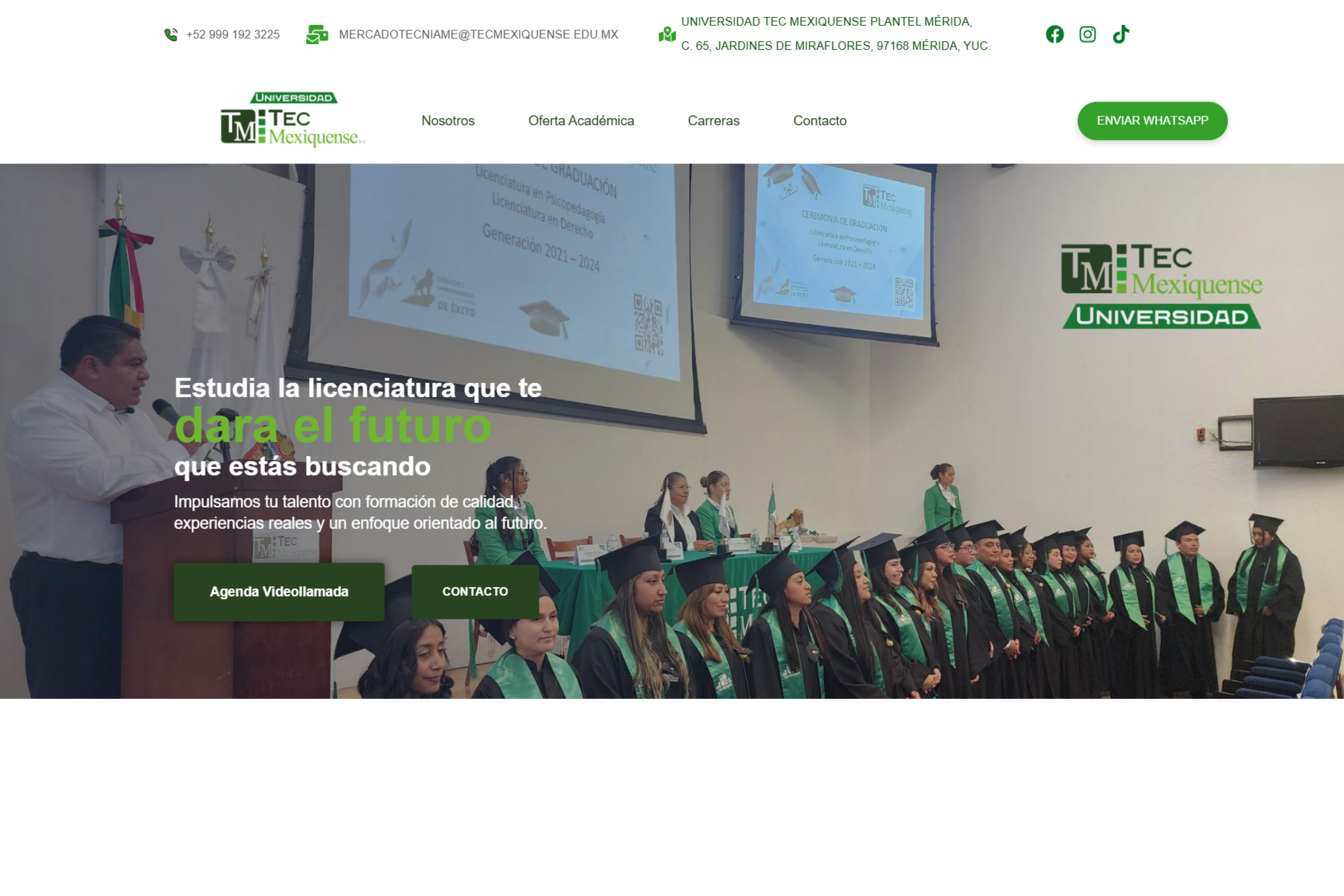 Tec Mexiquense buscaba dar mayor proyección a su universidad en Mérida, ya que su alcance se limitaba a la promoción local. Aunque ofrecen distintas licenciaturas, carecían de una página web que informara y atrajera a futuros estudiantes. Por ello, acudieron a nuestra agencia para desarrollar una plataforma digital clara y profesional.